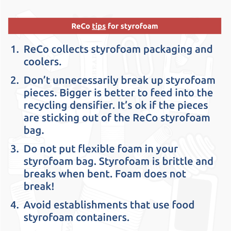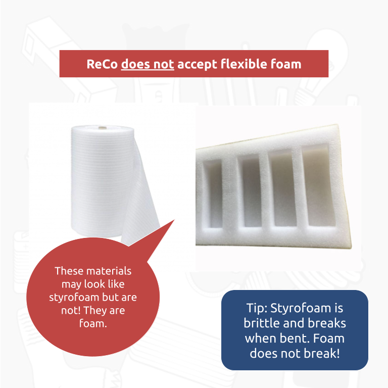 You can recycle styrofoam responsibly with The ReCollective. Use this guide to avoid contamination! How does styrofoam recycling work? ReCollective members are given a 55-gallon bag to collect styrofoam that they can fill at their own pace. It typically takes members a couple months or more to fill it up. Once full, members just put the bag on their doorstep along with all the other materials we accept on pickup day. Our partner Orange Recycling Services densifies the styrofoam. Densified blocks are then shipped to end-market manufacturers to make things like plastic components, picture frames, and building materials. Tips for styrofoam recycling: ♻️ReCo collects styrofoam packaging and coolers. ♻️Don’t unnecessarily break up styrofoam pieces. Bigger is better to feed into the recycling densifier. It’s ok if the pieces are sticking out of the ReCo styrofoam bag. ♻️Do not put flexible foam in your styrofoam bag. Styrofoam is brittle and breaks when bent. Foam does not break! ♻️Avoid establishments that use food styrofoam containers.